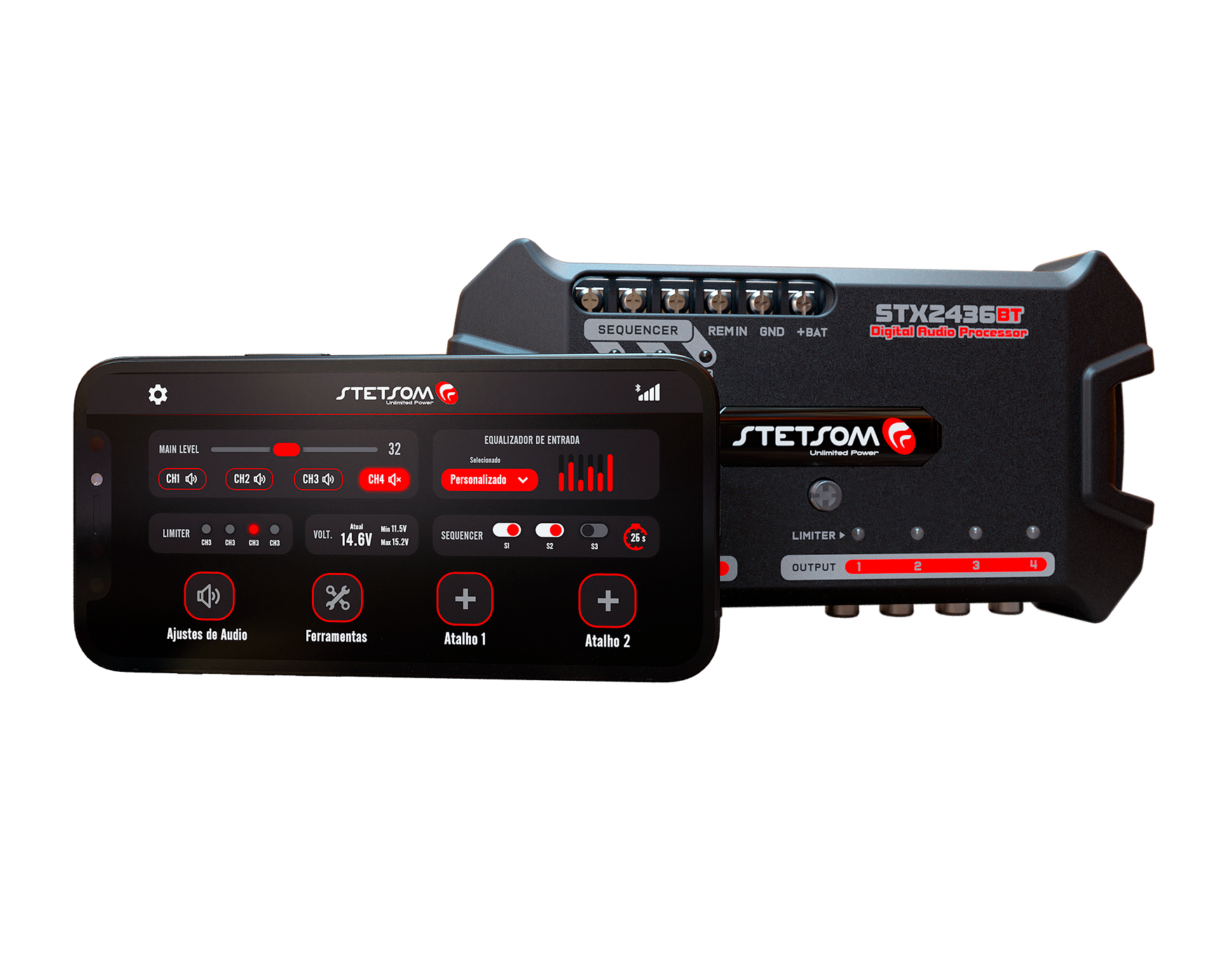 El STX2436BT es un procesador de audio digital que ofrece diversos ajustes y configuraciones de alta precisión para optimizar el rendimiento de su sistema de audio. Mediante comunicación Bluetooth, la información del procesador se puede visualizar y configurar remotamente mediante smartphones con sistemas Android o iOS . Su procesador de señal digital (DSP) permite modificar en tiempo real ecualizaciones, filtros de cruce, alineación, control de ganancia, inversión de fase, limitador, enrutamiento de entrada/salida digital y otros ajustes.